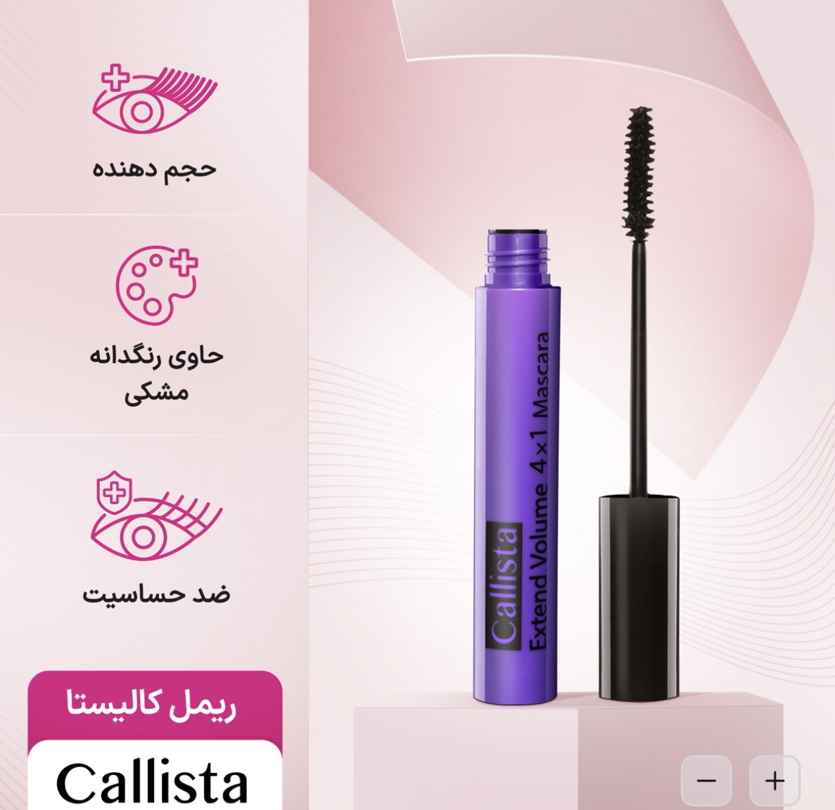 ریمل حجم دهنده 4 در 1 کالیستا مدل Extend Volume به خوبی فاصله میان مژههای شما را پوشانده و به آن حجم، بلندی و حالت میبخشد. در کنار ریمل حجم دهنده بنفش کالیستا میتوان از ریمل کالیستا صورتی و ریمل کالیستا نارنجی هم استفاده کرد تا حجم دهی مژهها بیشتر شود. موم زنبور عسل موجود در ترکیبات این محصول به ریمل کالیستا خاصیت ضد التهابی و بخشیده و از خشکی مژهها جلوگیری میکند. موم زنبور عسل به درمان عفونتهای قارچی و خارش ناشی از آن کمک میکند. این محصول فاقد پارابن است، بنابراین افراد دارای چشم حساس هم میتوانند با خیالی آسوده از آن استفاده کنند. ماندگاری این محصول بالا است و عدم ریزش آن در طول روز به شما این حق انتخاب را میدهد تا بتوانید از آن به صورت روزانه، در مهمانیها و مراسمها مهم استفاده کنید. اگر مژههای بلندی دارید و تنها به دنبال محصولی هستید که به مژهها حجم دهد، شما میتوانید از ریمل حجم دهنده کالیستا مدل Wonder Volume و محصولات کالیستا استفاده کنید.